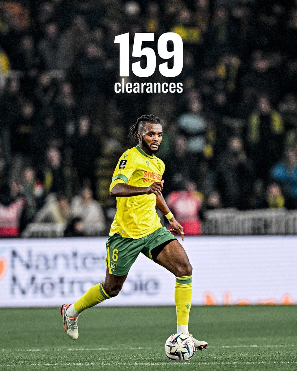 Awaziem’s ability to read the game and make crucial interventions has been vital for Nantes throughout the campaign, with the centre-back recording more clearances than any other player so far this season.