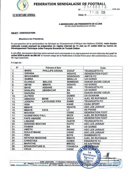 On Friday evening, the Senegalese Football Federation officially released the final list of players selected for the tournament.