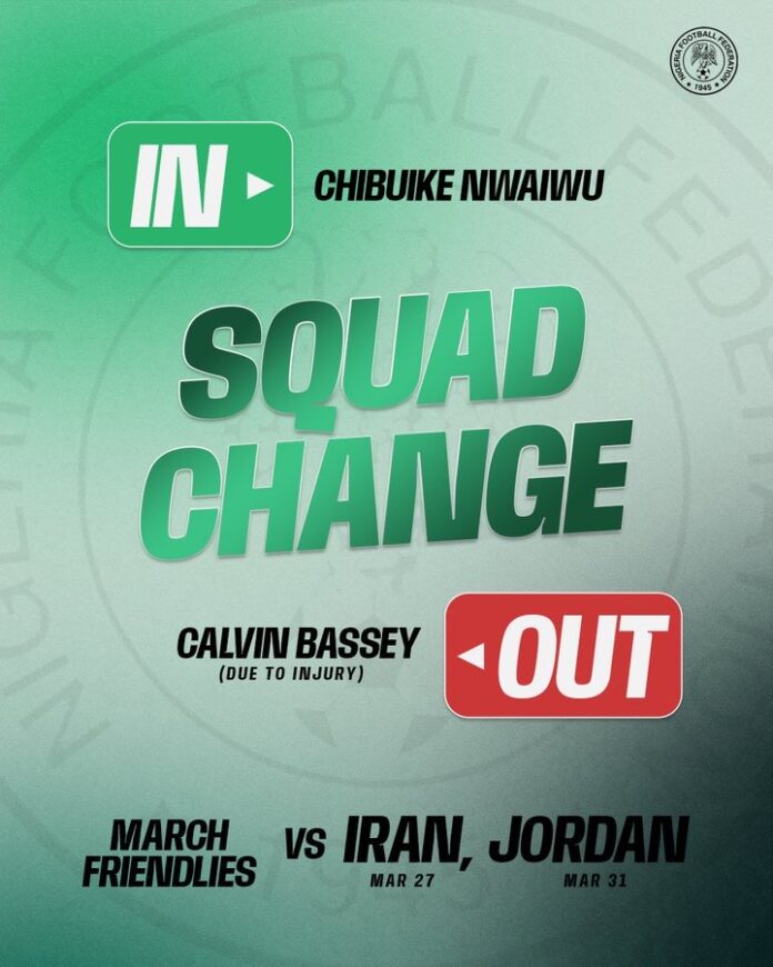 Nwaiwu, who plays for Trabzonspor, now steps in as a direct replacement and is expected to link up with the squad ahead of the upcoming fixtures against Iran and Jordan